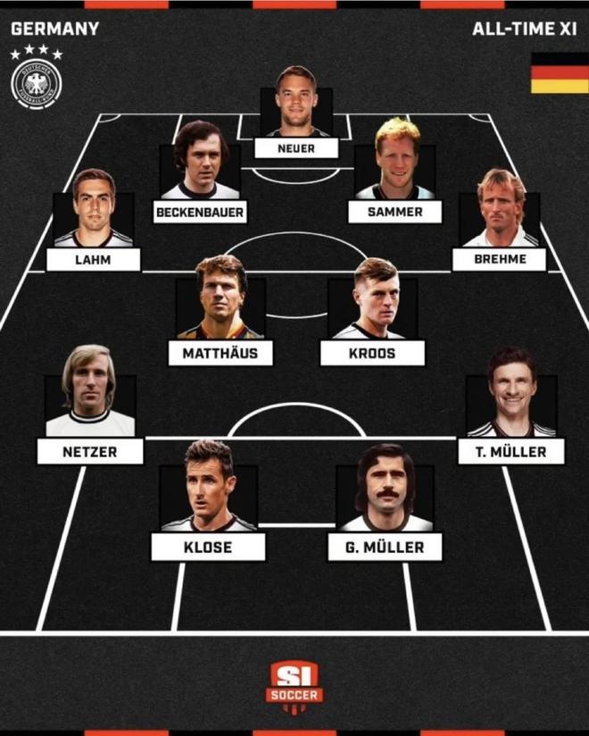 最近SI Soccer發(fā)布了德國歷史最佳陣容榜單。在該榜單中,貝肯鮑爾、馬特烏斯、克羅斯、穆勒等名將入選??ǘ?、巴拉克、克林斯曼等名將遺憾落榜。相關(guān)討論隨之而來,細(xì)節(jié)值得展開。